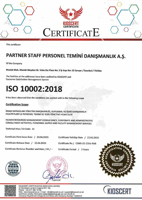 PARTNER STAFF; Garson, barmen, aşçı, mutfak temizliği, housekeeping, host-hostes, işletme desteği, etkinlik, eğlence ve akademi hizmetleri sunmaktadır.